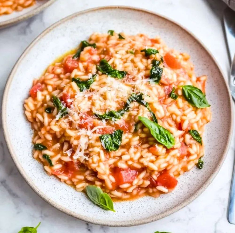 A creamy and rich risotto cooked with a fresh tomato puree and Italian herbs. A classic Italian comfort dish.